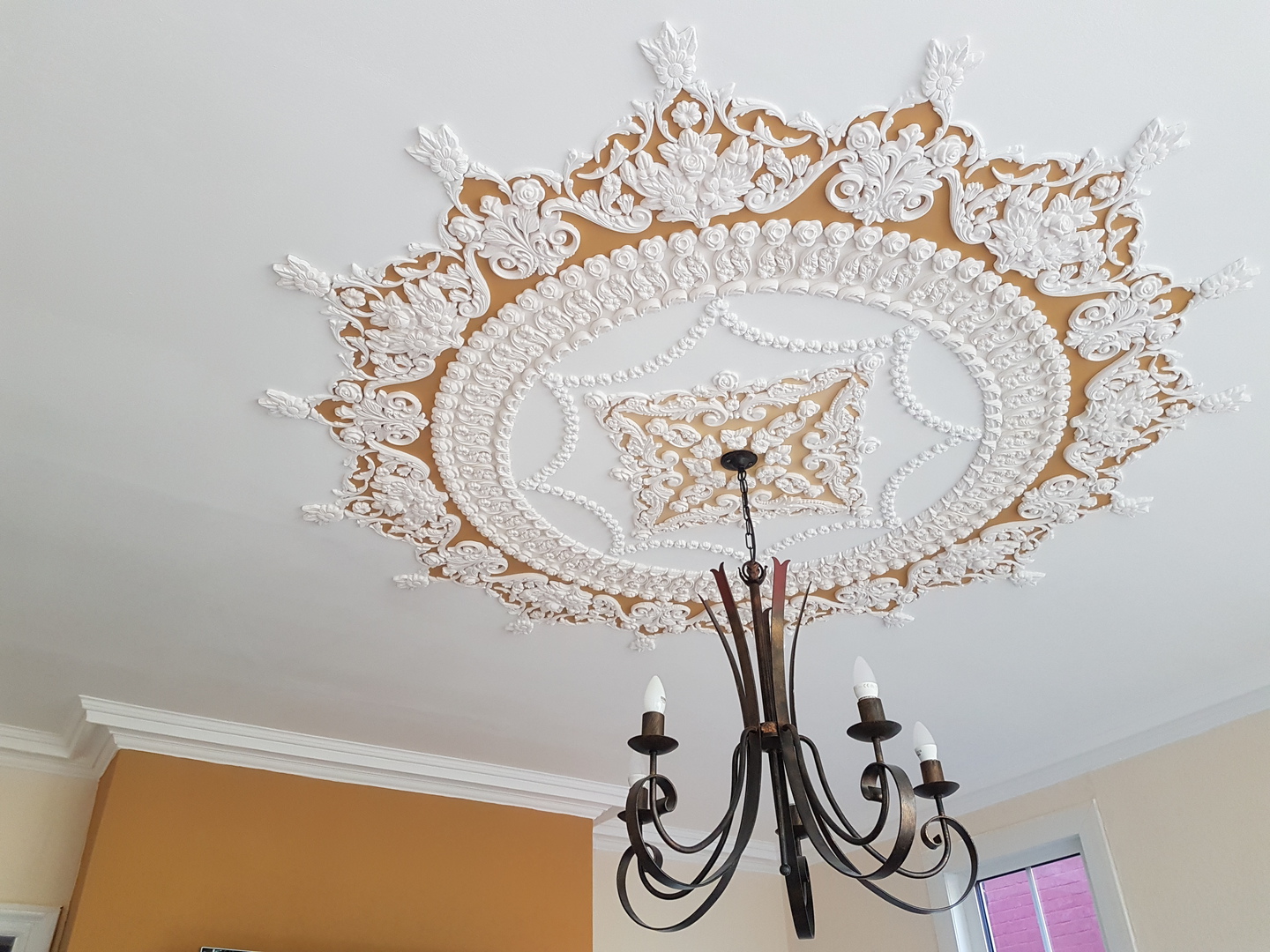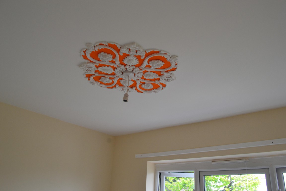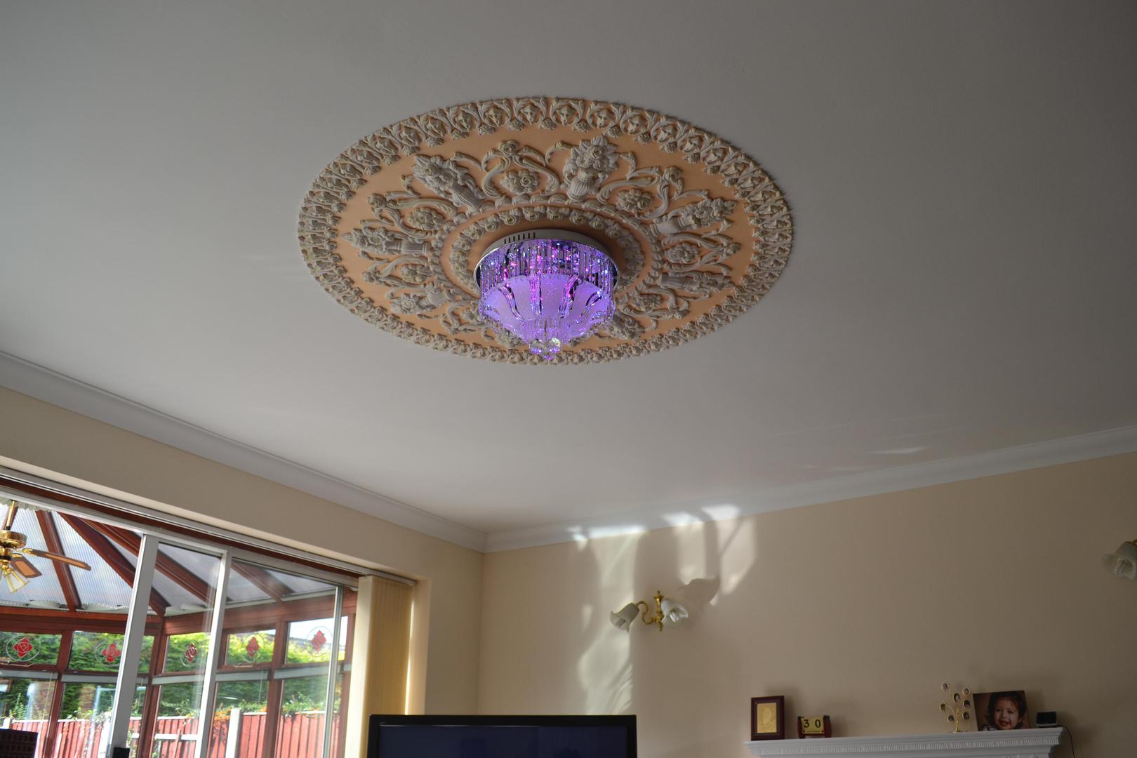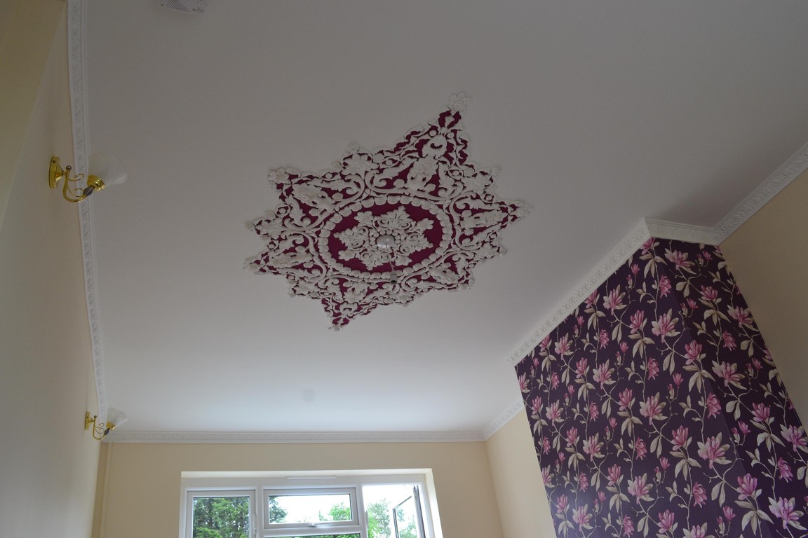 Plaster ceiling design, a unique and different item with easy installation. Every design comes together with lots of pieces moulded with high quality plaster of Paris, which are applied to your ceiling using strong everlasting adhesives. These designs and photos can give you an idea of how it will be look like on your ceiling.